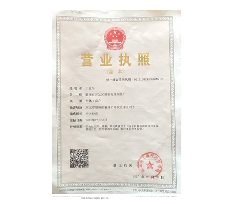 Strong technical force and advanced production technology 霸州市開發(fā)區博裕化纖制品廠是一家生產丙綸長絲的大型企業,擁有先進的紡絲生產線,現有技工8名,職工200多名,形成華北地區產量較大、品種較全、技術力量雄厚、生產工藝先進,以生產300D—1800D各種中、高、強丙綸長絲為主導產品